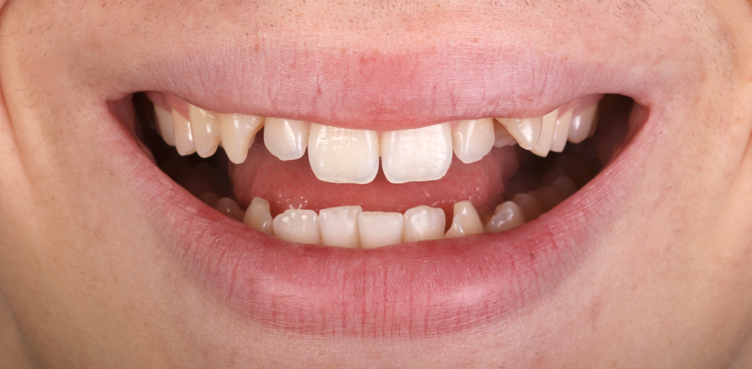 Sorriso do paciente antes de iniciar o tratamento.