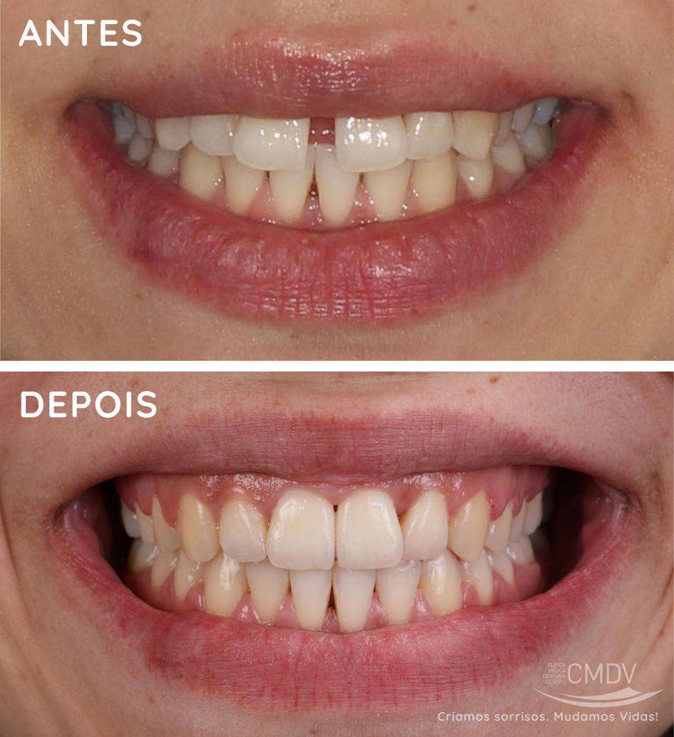 Agora com os dentes direitos e bonitos esta paciente melhorou a sua qualidade de vida!